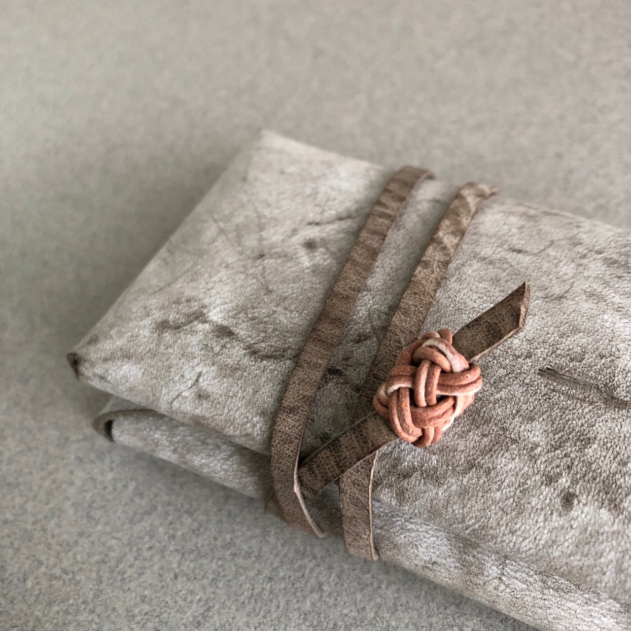 革紐をくるりと巻いて留めるプリミティブな構造です。